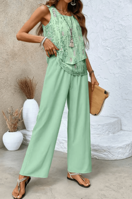 Lara | Set Mentolo emana un'eleganza senza tempo e una qualità artigianale. La fresca tonalità verde menta e la silhouette leggermente drappeggiata esaltano una figura femminile senza compromettere il comfort. Il set è realizzato in edizioni limitate, offrendo una provenienza tangibile e un discreto fascino da collezione per coloro che apprezzano il design classico e il raffinato moderno. È un investimento nella timelessness che parla a chi valorizza i dettagli e l'artigianato in ogni cucitura.