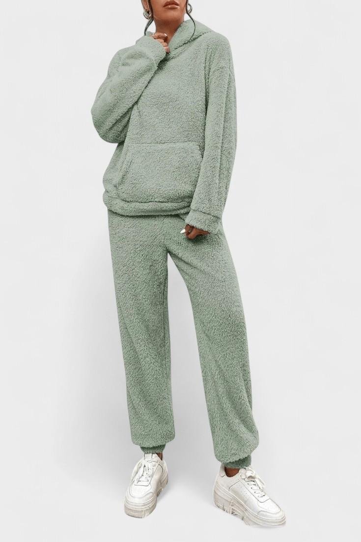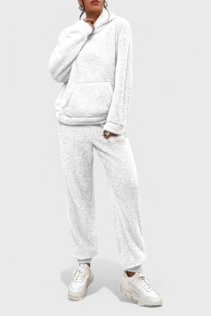 Rosa | Il set Teddy emana un'eleganza senza tempo e un comfort moderno in una calda tonalità rosa di spesso tessuto teddy. Questo set composto da due pezzi include una felpa oversize con tasca a marsupio e pantaloni abbinati, entrambi realizzati nello stesso materiale lussuoso. Ogni punto testimonia attenzione e artigianato, e il set mantiene calore e stile durante i mesi freddi. La scelta dei materiali e la silhouette spaziosa conferiscono un fascino senza tempo che può facilmente diventare un capo di punta nel guardaroba anno dopo anno. Con disponibilità limitata, il set Rosa | Teddy si presenta come un oggetto da collezione senza tempo, che offre comfort e durata a lungo termine – un lusso discreto che può essere facilmente abbinato a un top semplice o accessori per un look completo a casa o durante le escursioni invernali.